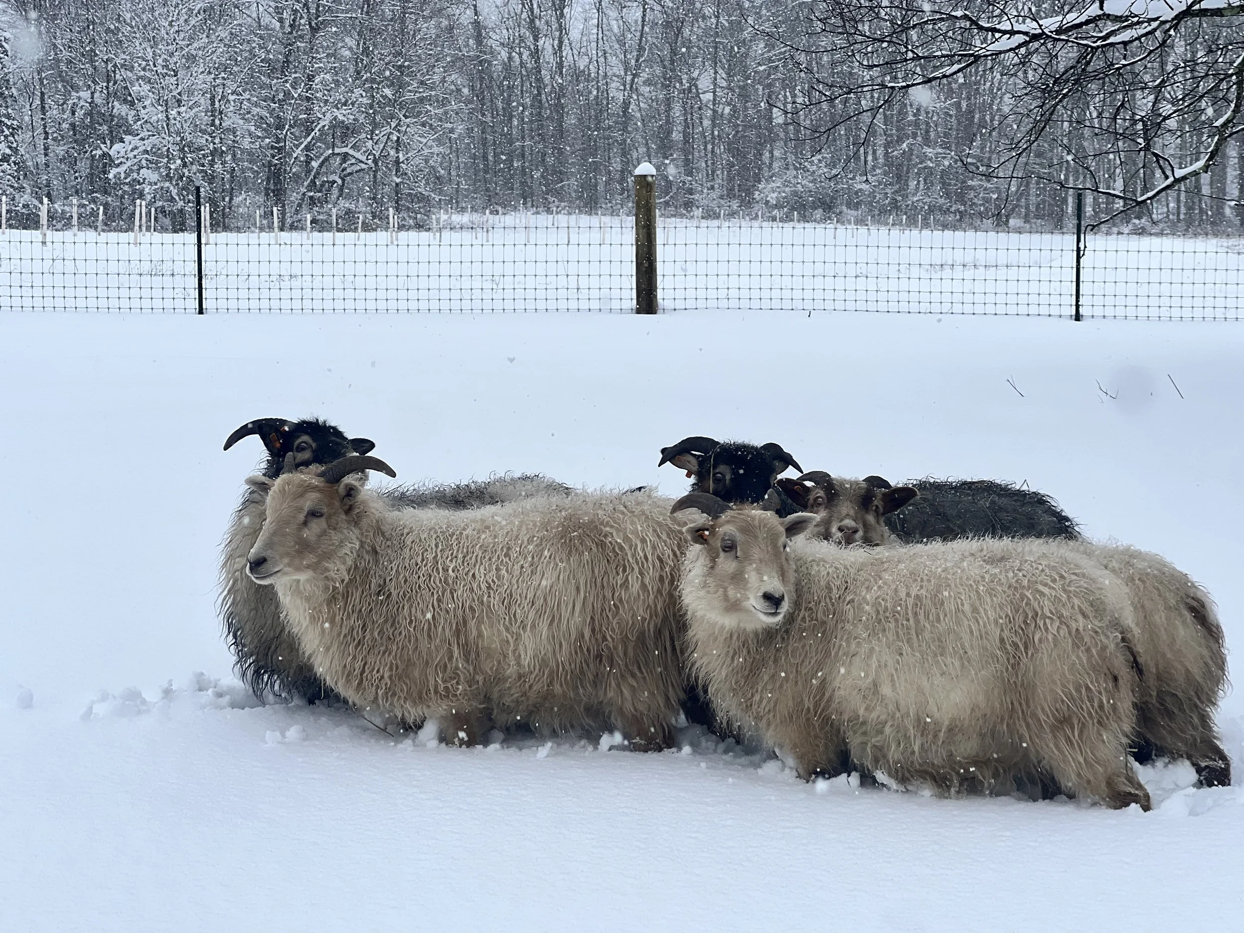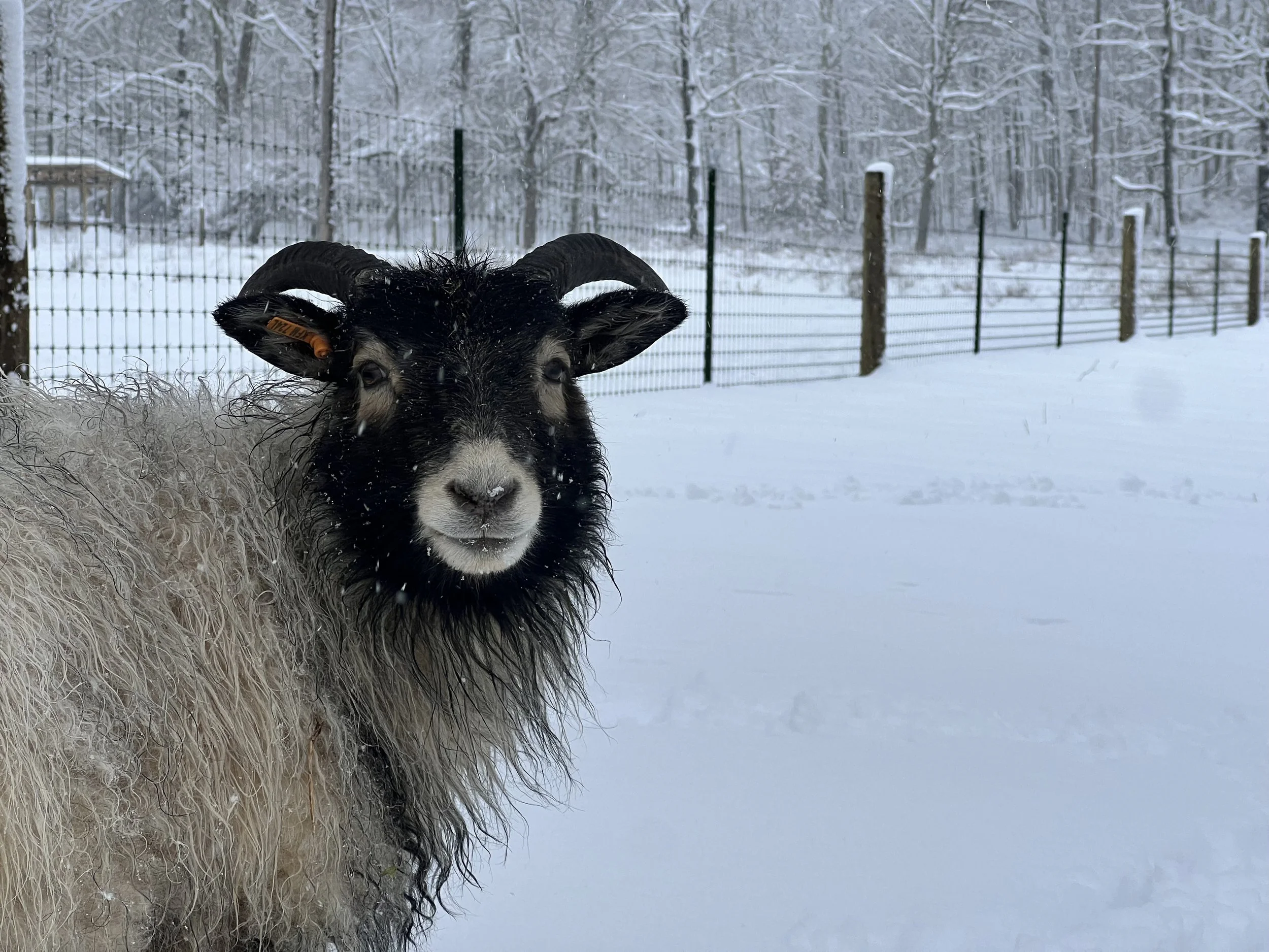 Welcome to Wren & Rose Farm - a family run farm in the heart of the beautiful Hudson Valley in upstate New York. Our flock of registered, horned Icelandic Sheep spend the majority of the year rotating daily through our 77 acres of lush pasture and woods and the winter months hanging out near our 1750s barn, munching on hay we make right here on the farm. In addition to our Icelandic Sheep, we also raise a small number of heritage-breed Berkshire hogs every summer, allowing them to graze and root in our pastures and woods as pigs were meant to do.